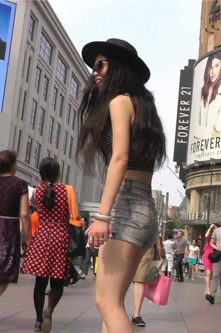 街拍性感牛仔紧身短裤美女细腰翘臀长腿!雪白修长的大腿,想犯罪(3)