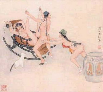 宋代也出现过这种"秘戏图",元代画家赵孟还因画这种画而知名,可是春宫画的广泛流行却在明代,它也是在严酷的性禁锢与性压迫的条件下发生逆变的一种产物。